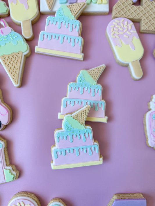 Ice Cream Drip Cake Debosser Stamp with matching Cookie Cutter