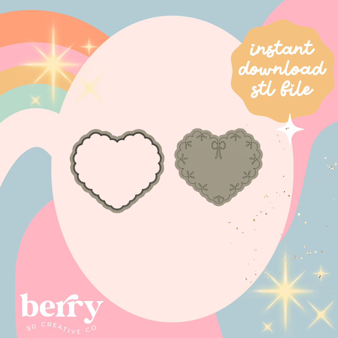 Lace Vintage Heart Cookie Cutter and Stamp stl file