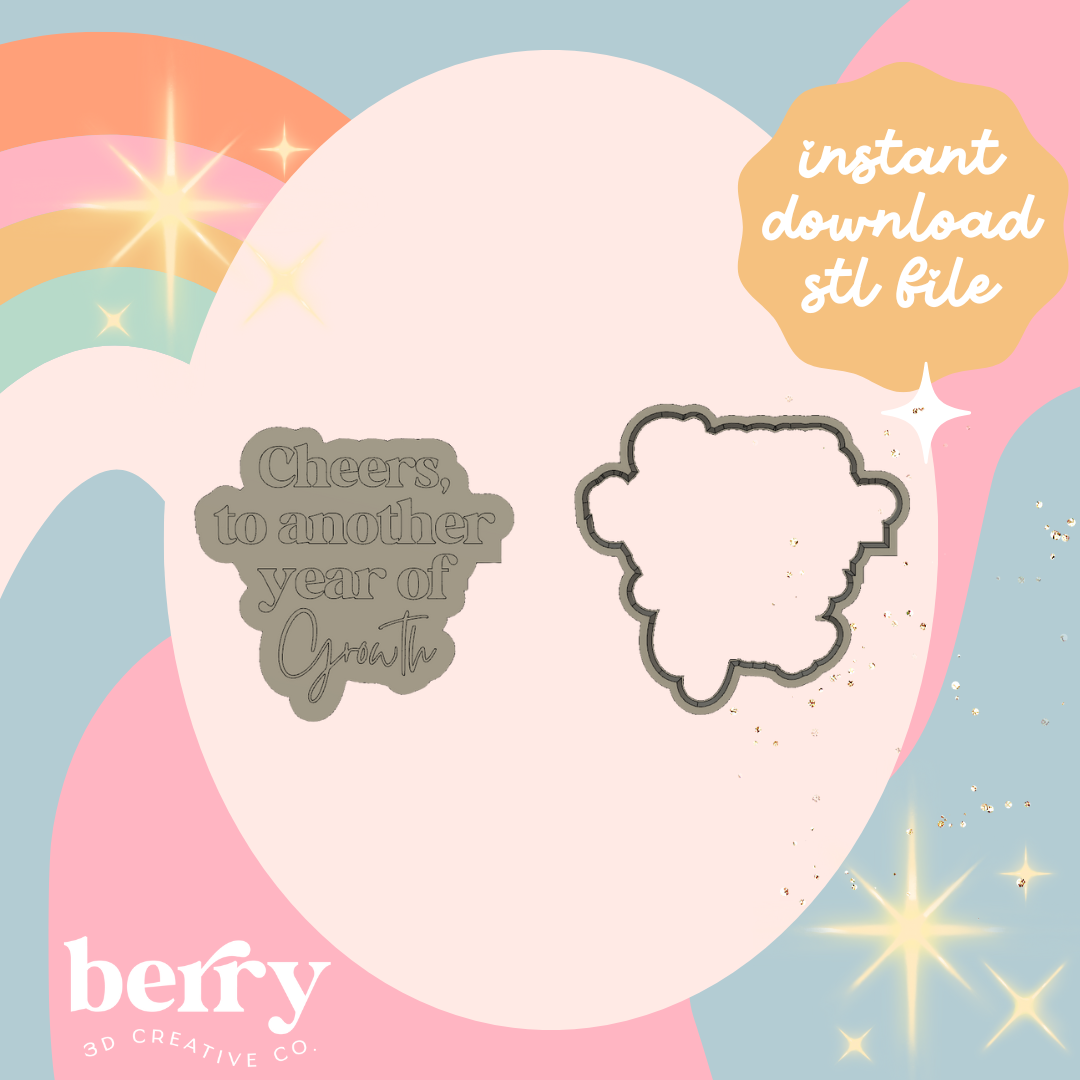 Cheers to another year of growth Cookie Cutter and Stamp stl file