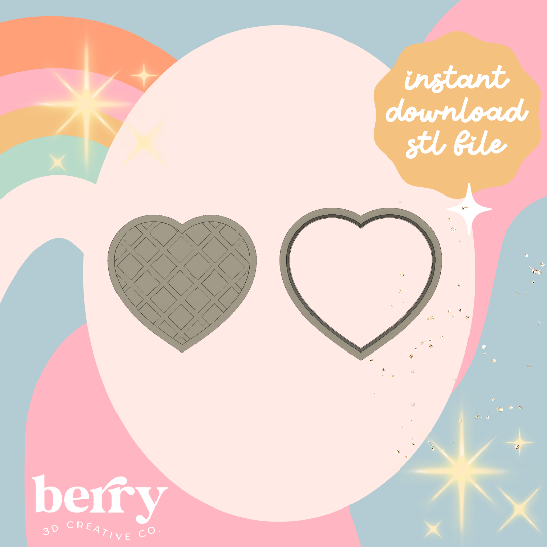 Waffle Heart cutter and Stamp stl file