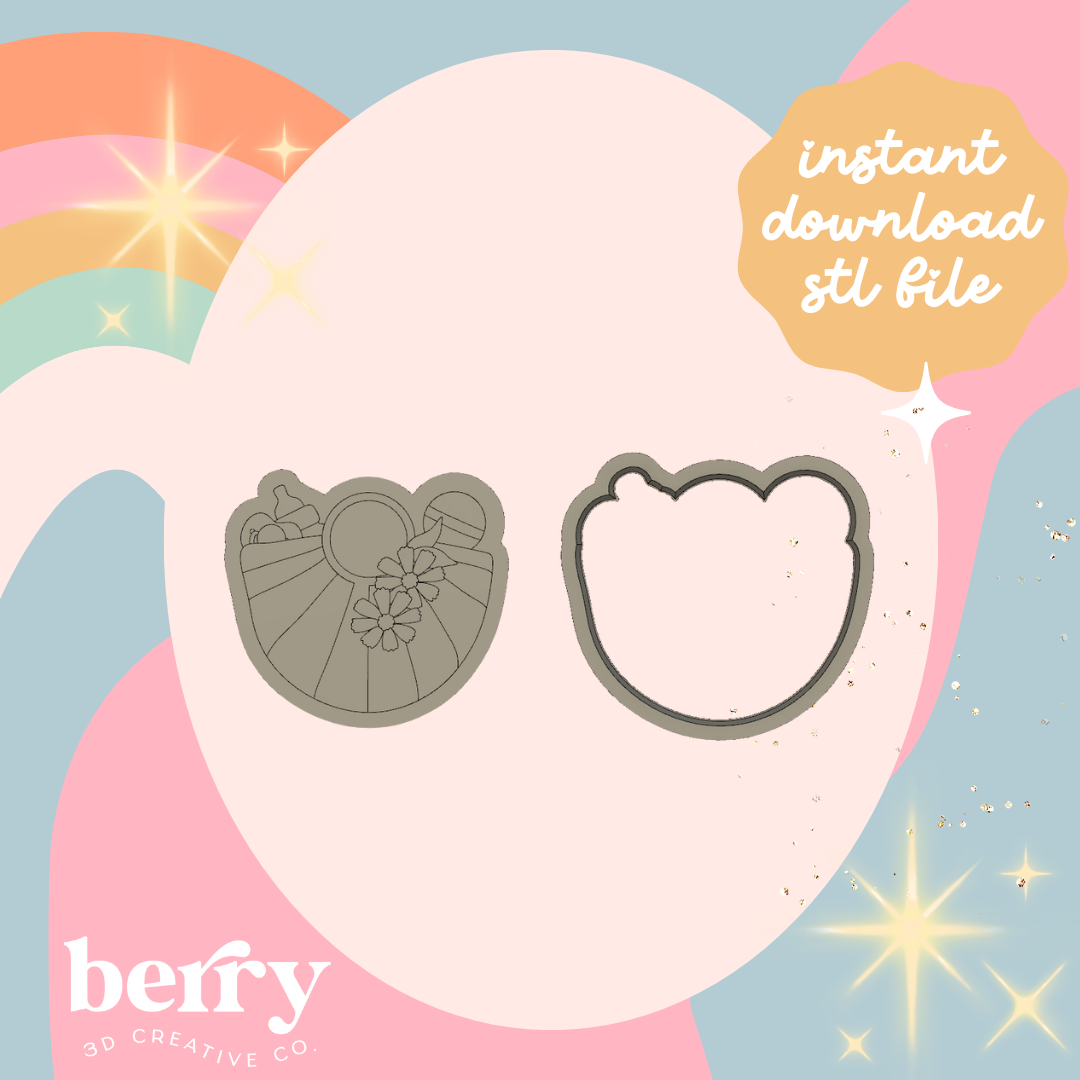Baby Nappy Bag with flowers Cutter & Stamp stl file