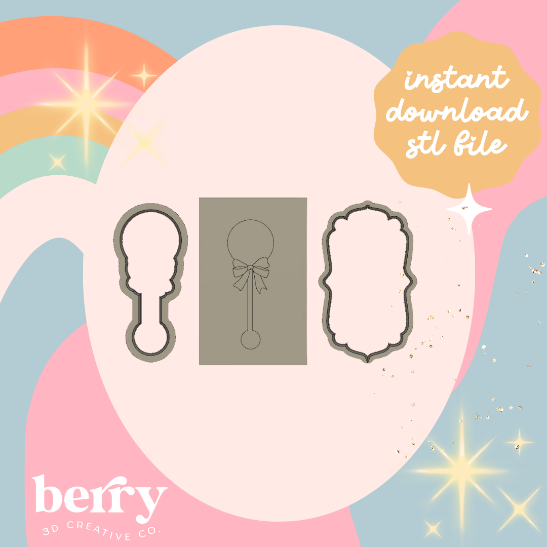 Vintage Rattle with Double Bow Cutter and Stamp stl file