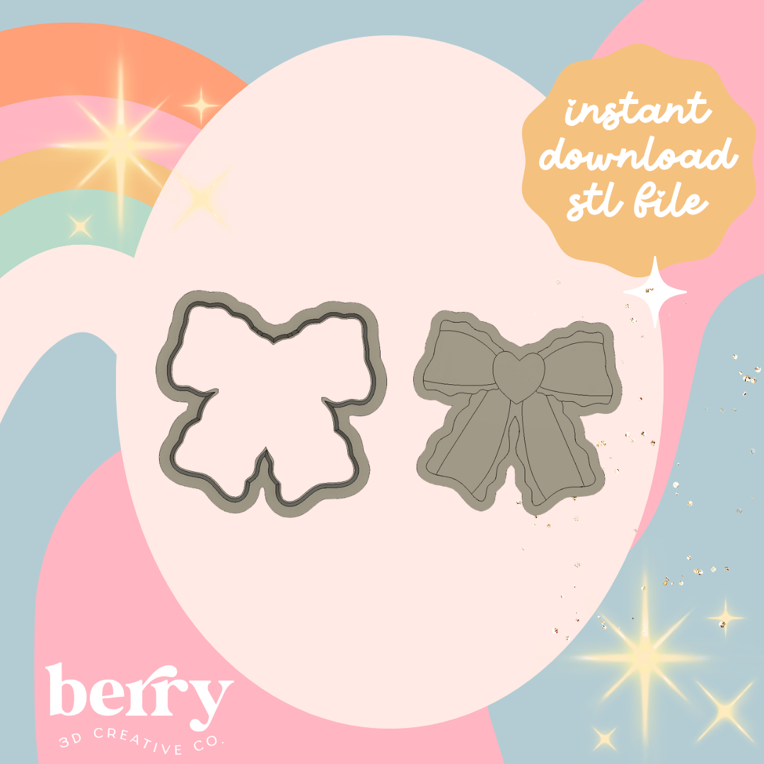 Soft Lace Heart Bow Cutter & Stamp stl file