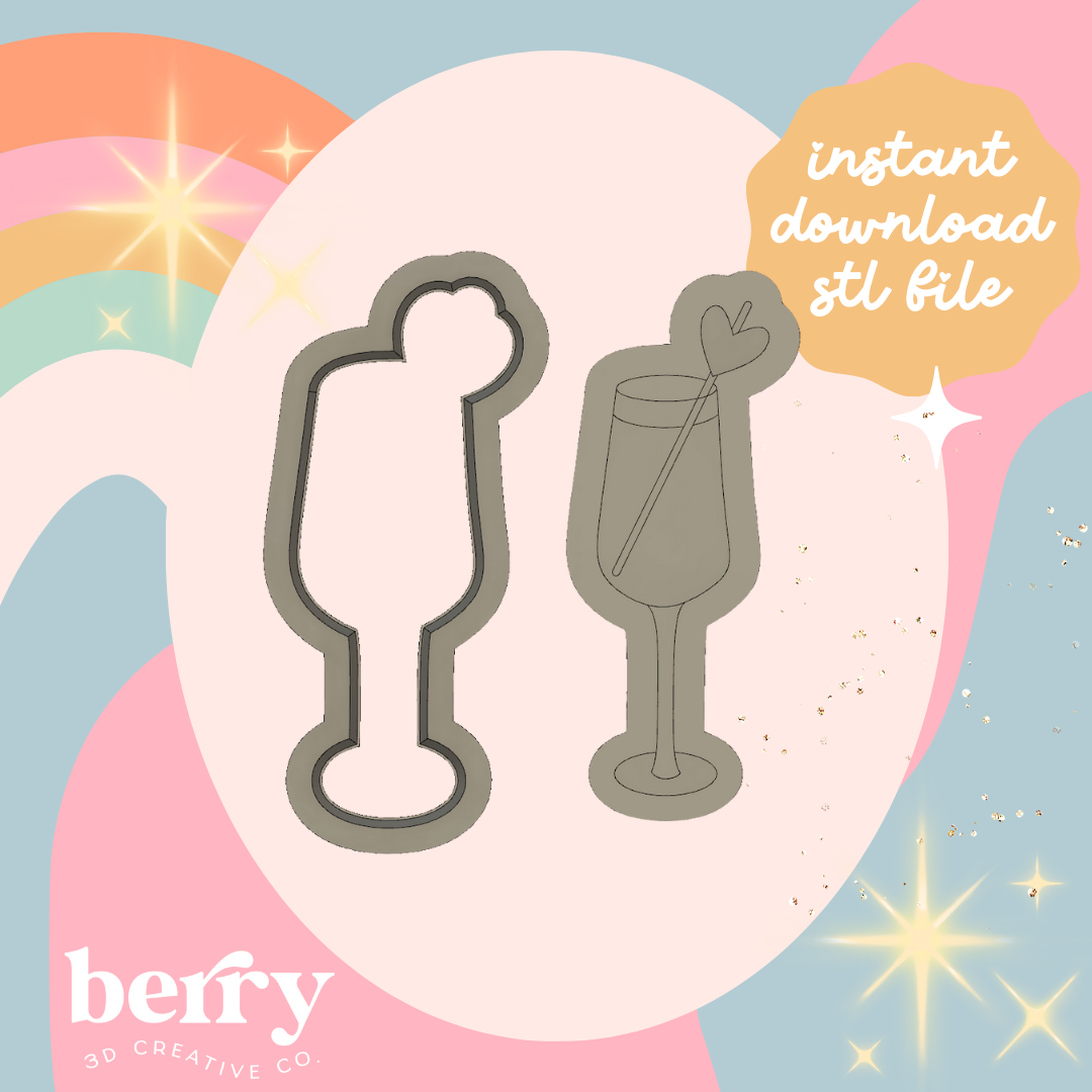 Cocktail/wine glass with hearts Cutter & Stamp stl file